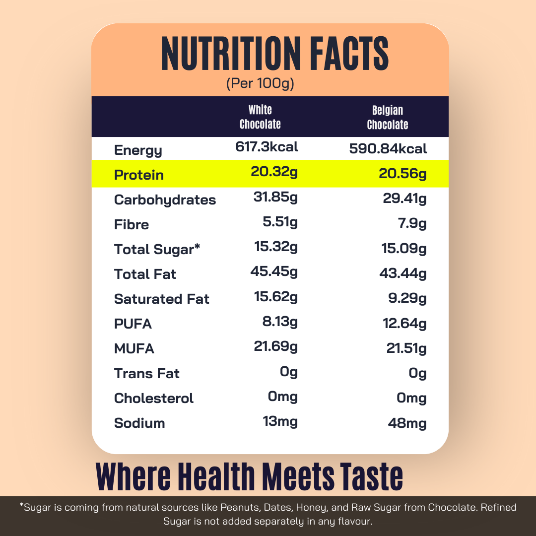 White Chocolate: Energy & Protein Boost, packed with protein, honey, and dates for natural energy and support in weight management.